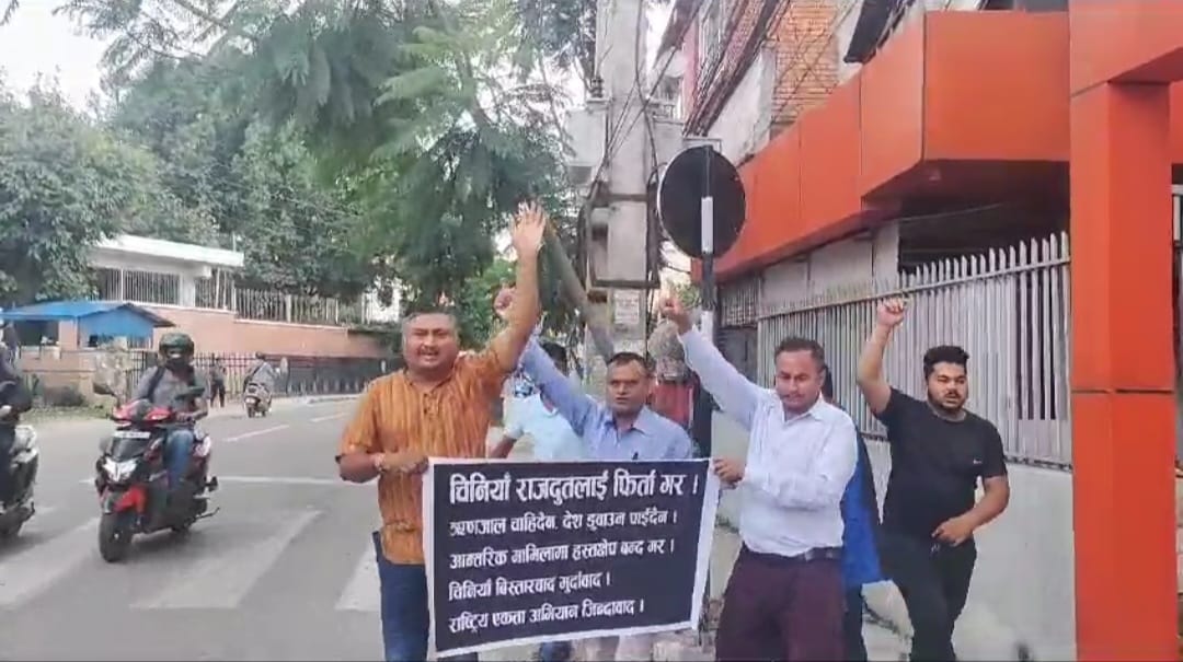 काठमांड़ौ। राष्ट्रिय एकता अभियानले आज काठमाण्डौं स्थित चीनियाँ दुतावास अगाडि प्रदर्शन गरेको छ। राजदूतले नेपालको आन्तरिक मामिलामा हस्तक्षेप गरेको विरोधमा अभियानले प्रदर्शन गरेको हो।