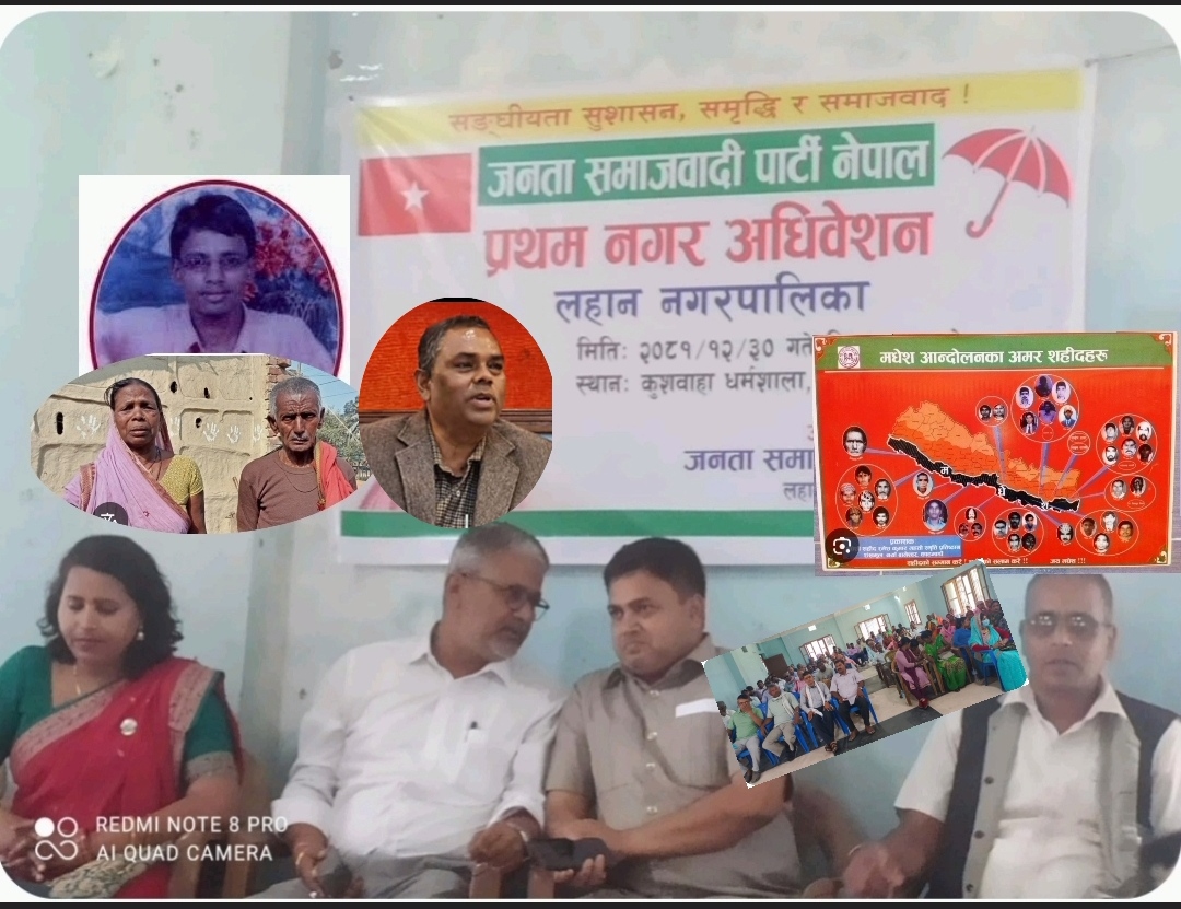 महेश सिंह लहान, सिरहा- जनता समाजवादी पार्टी (जसपा) नेपालले सिरहाको लहानमा आयोजना गरेको पहिलो नगर अधिवेशनले तीव्र आलोचना सामना गरिरहेको छ। मधेस आन्दोलनका सहिदहरूप्रति कुनै पनि श्रद्धाञ्जली कार्यक्रम नगरी अधिवेशन संचालन गरिएको आरोपले पार्टीप्रति गम्भीर असन्तुष्टि उत्पन्न भएको छ।
