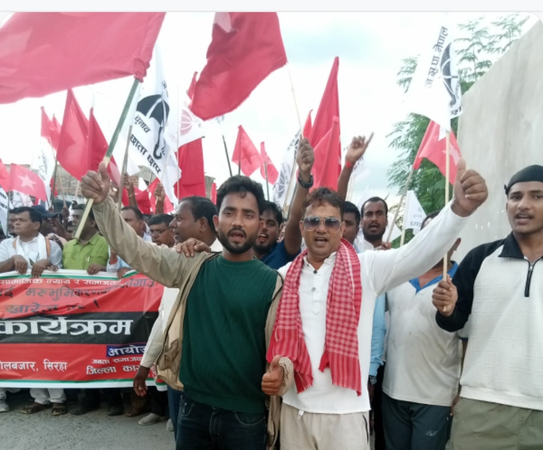 महेश सिंह सिरहा –जनता समाजवादी पार्टी (जसपा) नेपालले आफ्ना केन्द्रिय अध्यक्ष उपेन्द्र यादवमाथि लगाइएको गौर हत्या काण्डसम्बन्धी मुद्दा राजनीतिक पूर्वाग्रहका आधारमा दायर भएको दाबी गर्दै सिरहाको गोलबजारमा बिहीवार बृहत विरोध प्रदर्शन गरेको छ।
