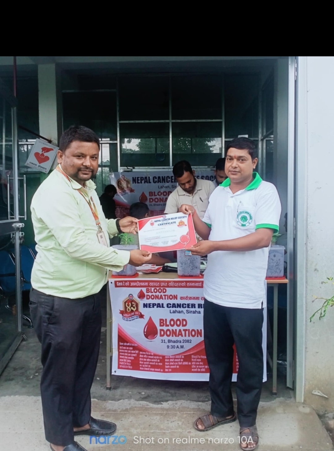 वरिष्ठ आयुर्वेद तथा पंचाङ्ग आयुर्वेद उपचार केन्द्र लहानका संचालक डा.मिथिलेश सिंह लगायतका ब्यक्तीहरुले रक्तदान गरेको हो।